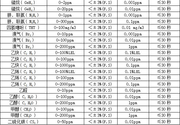 檢測范圍:10-100、1000、5000、10000ppm、0-25%Vol、96%Vol